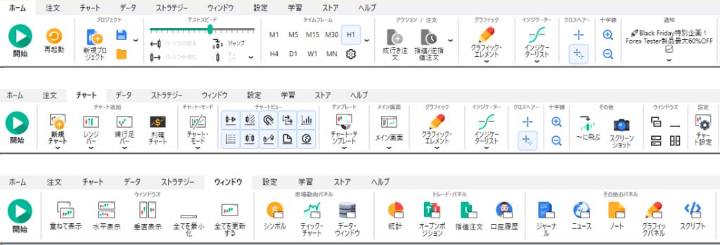 フォレックステスター5(Forex Tester5)とは、過去20年分以上のチャートを利用して様々な通貨のトレード練習が行える検証ソフトです。