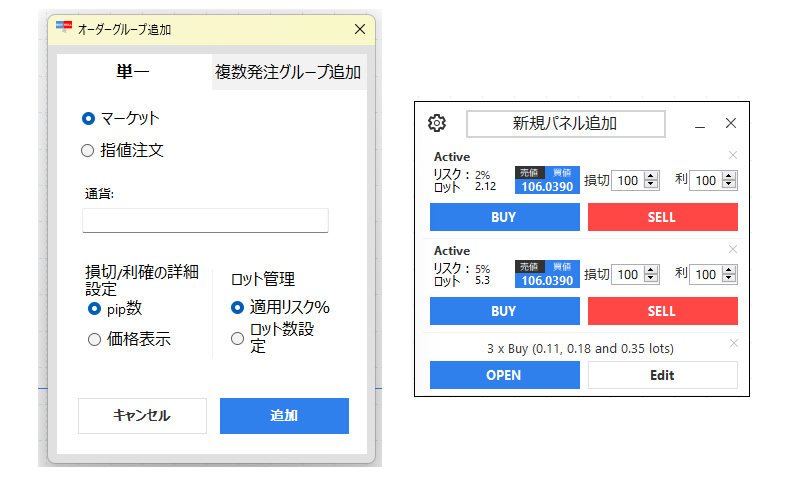 複数通貨の同時操作