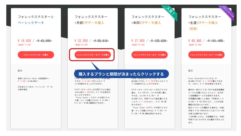 トレードスタイルや検証する時間軸によってプランを選べるようになっています。