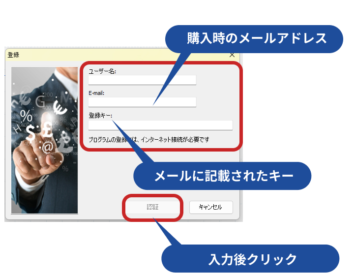 • ライセンスキーの入力