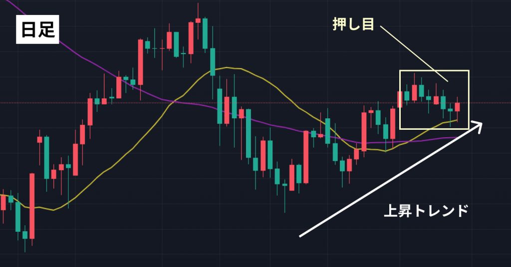 通常、セットアップを行う時間足より小さい足でトリガーを設定します。