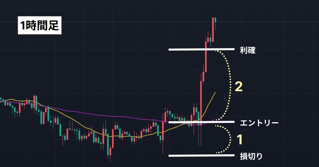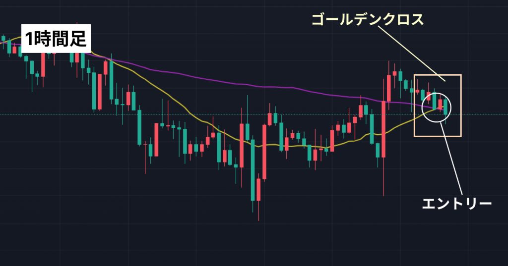 たとえば、 日足でセットアップを行ったら、1時間足の水平線ブレイクやゴールデンクロスでエントリーといった感じです。